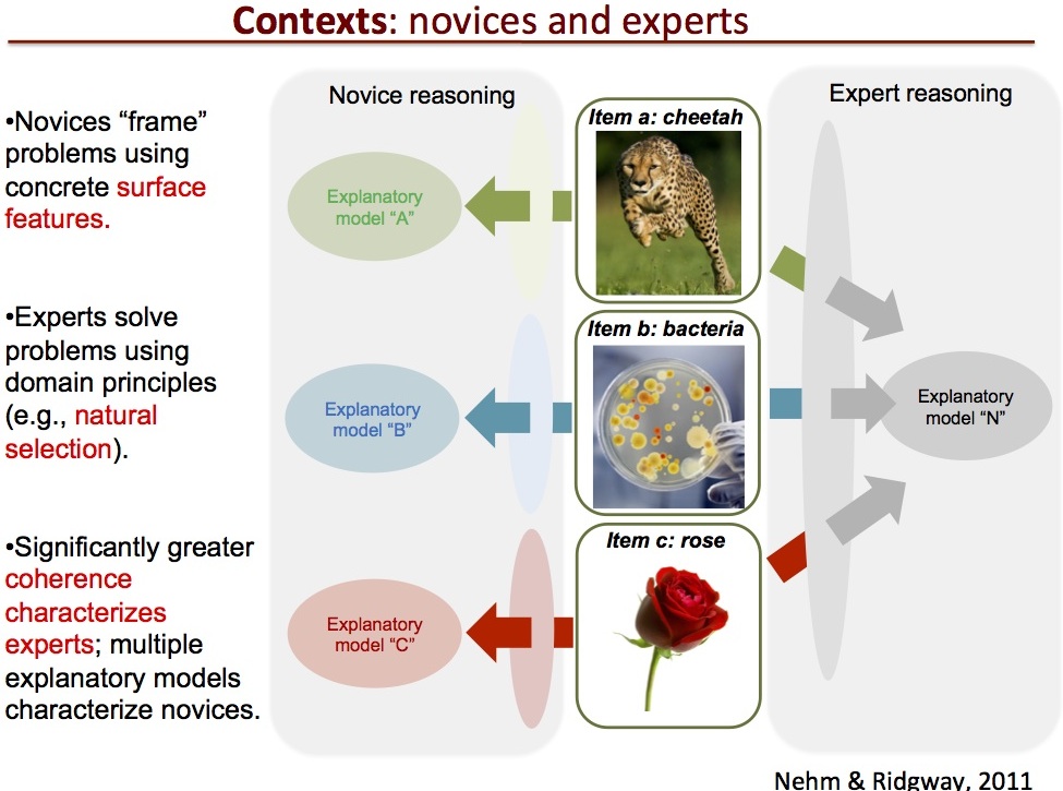 Fig 2: Là où l’expert perçoit l’unicité fondamentale … les élèves voient la diversité et emploient des modèles explicatifs diversifiés ? [img]. Source :Nehm, R. H. (2016)