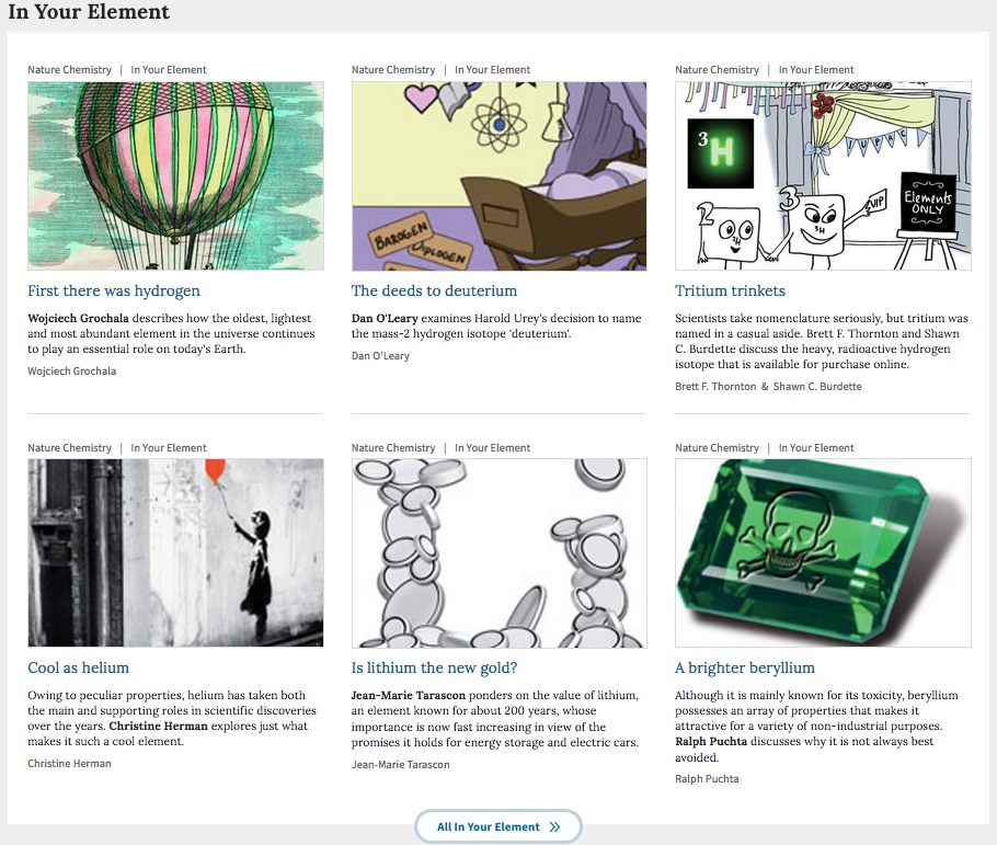 To celebrate the International Year of the Periodic Table of Chemical Elements, our editors have curated research papers, commentaries and multimedia from Nature and the Nature Research journals.